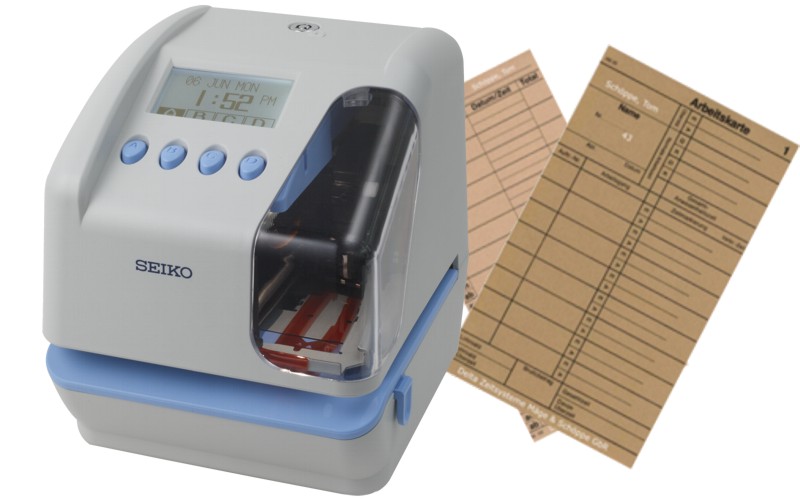 Die SEIKO TP-50 bietet aufgrund frei konfigurierbarer Druckformate größte Flexibiliät. Hauptfunktion ist die Registrierung von Zeit, Datum, Nummerierung - auch in Kombination mit festen Kommentaren oder freien Kurztexten. Diese können individuell erstellt und 4 Drucktasten zugeordnet werden. Einfacher Abruf per Tastendruck am Gerät. Neu ist der automatische 2 Liniendruck. Der Druckkopf druckt präzise und schnell ohne dass das Formular nochmals angelegt oder von Hand transportiert werden muss. Vielseitige Anwendungsmöglichkeiten durch Druck auf unterschiedliche Karten und Belege, auch mit Durchschreibesätzen. Typische Anwendungen sind Protokollierungen (z.B. Posteingang, Auftrags- und/oder Projektzeiterfassung und Anwesenheitszeiterfassung). Alle Einstellungen können am PC erstellt werden und mit einem USB Stick an das Gerät übertragen werden.